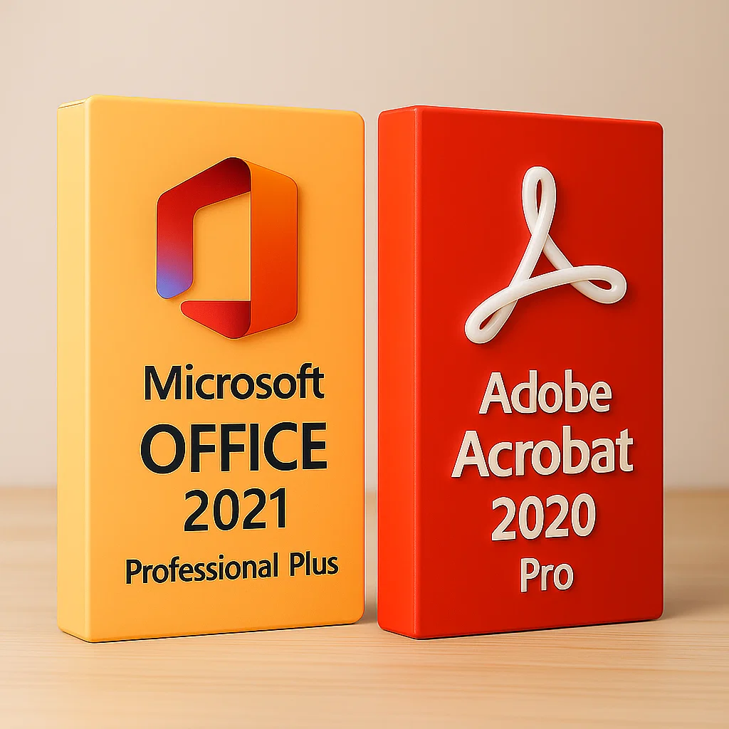 Paket Microsoft Office 2021 Professional Plus i Adobe Acrobat Pro 2020 za Windows donosi kompletno rešenje za produktivnost, saradnju i sigurnu razmenu dokumenata. Namenjen je profesionalcima, malim i srednjim preduzećima, obrazovnim ustanovama i državnim institucijama koje zahtevaju pouzdane alate za rad u modernom poslovnom okruženju. Ova kombinacija obuhvata najnoviju verziju Microsoftovih aplikacija za obradu podataka i dokumenata, zajedno sa vodećim softverom za rad sa PDF fajlovima.
